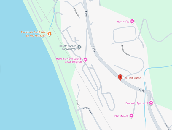 Ty’r Graig Castle is on Llanaber Road about 1/2 a mile out of Barmouth, going towards Harlech on the A496. The Postcode for Satellite Navigation system is LL42 1YN.